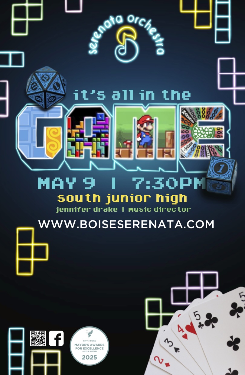 Game on! Serenata Orchestra is leveling up this spring with a concert packed with music that plays all the right moves. Roll the dice on an unforgettable evening featuring music from your favorite video games, board games, and beyond — it's a night where the orchestra holds all the cards. Don't press pause on this one. Join us Saturday, May 9th, 2026, 7:30 PM at South Junior High. Free admission, as always. Player one, press start!